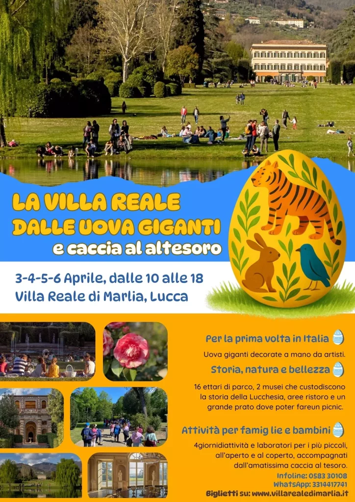 La Villa Reale dalle Uova Giganti è il nuovo evento dedicato alle famiglie nel periodo di Pasqua che prolungherà la storica caccia al tesoro di Pasquetta di 4 giorni e arricchirà i meravigliosi giardini con Uova Giganti decorate e attività per bambini dalle 10 alle 18.